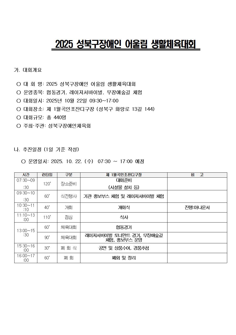 [2025 성북구장애인 어울림 생활체육대회] 대회개요 및 일정 장소 안내