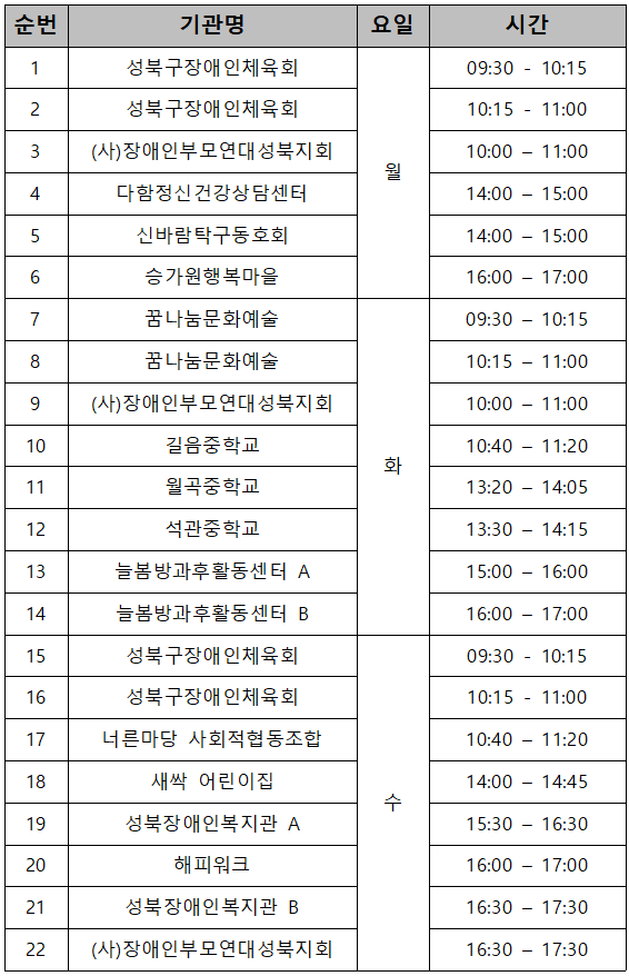 2026년도 성북구장애인체육회 장애인생활체육지도자 상반기 배치단체 안내